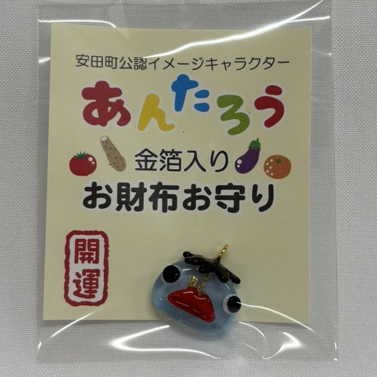 あんたろうの立体的な顔の中に金箔が入っています。お金を大切にしたいという願いを込めて、財布に入れておくと心強いアイテムです!