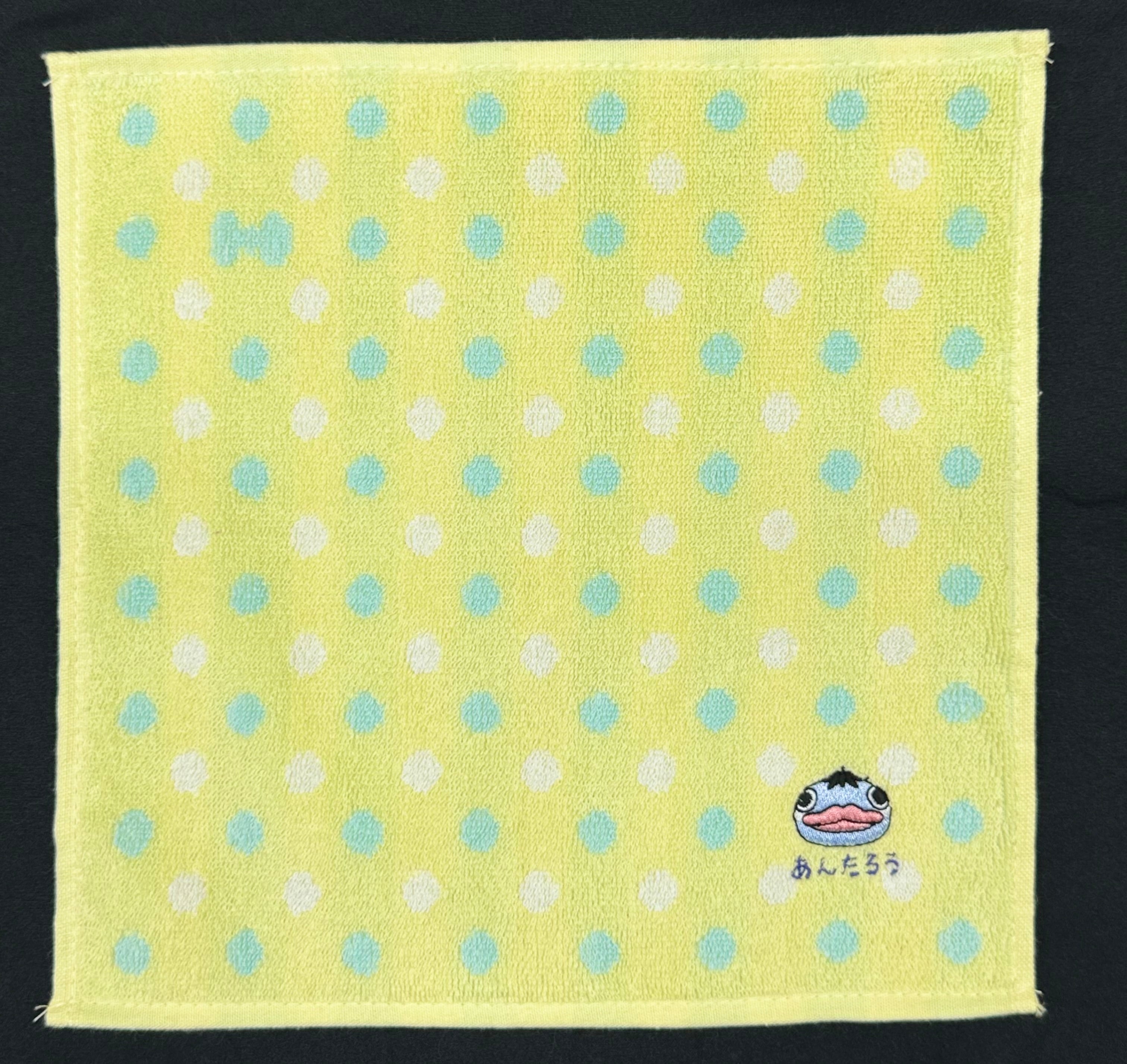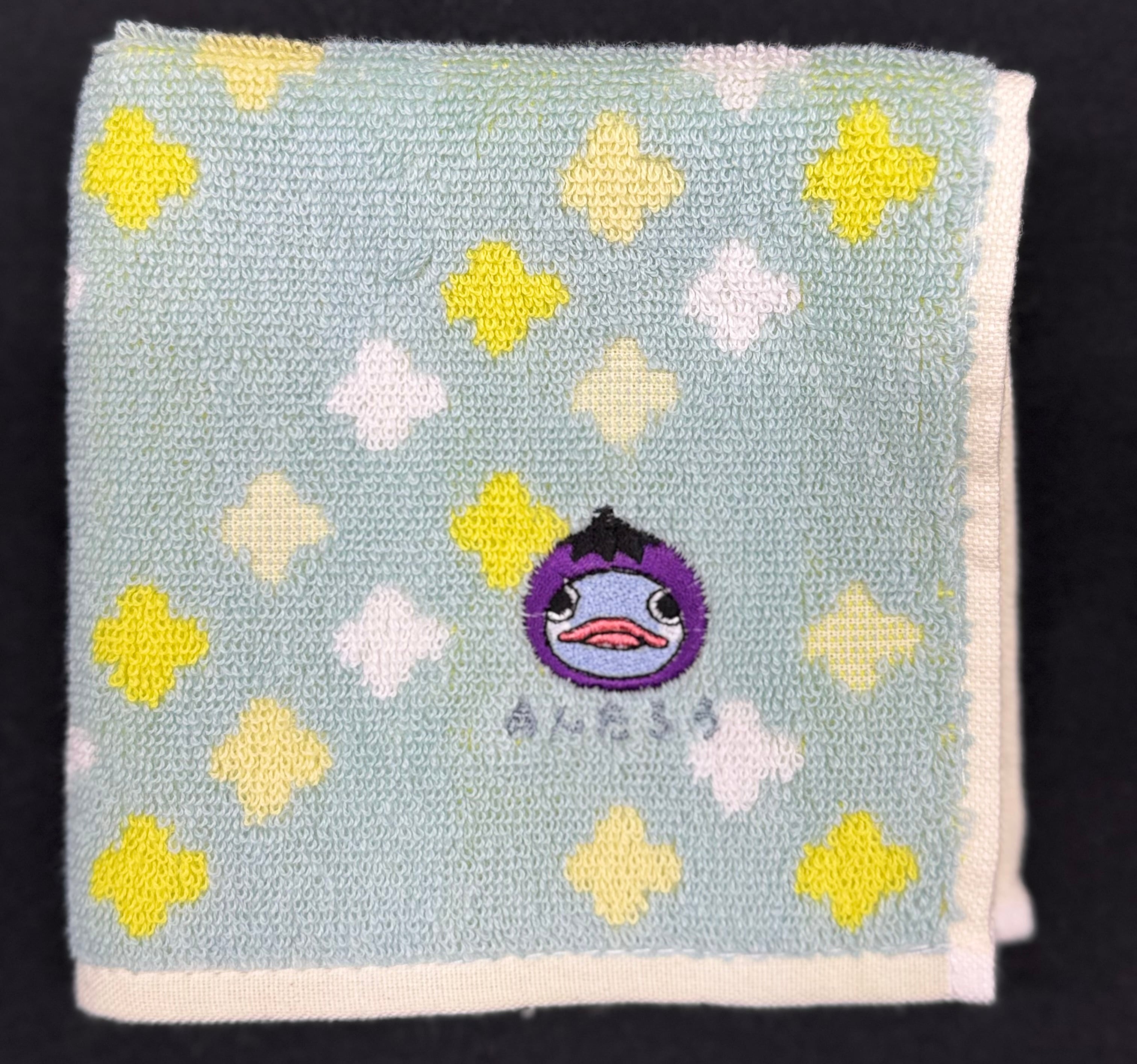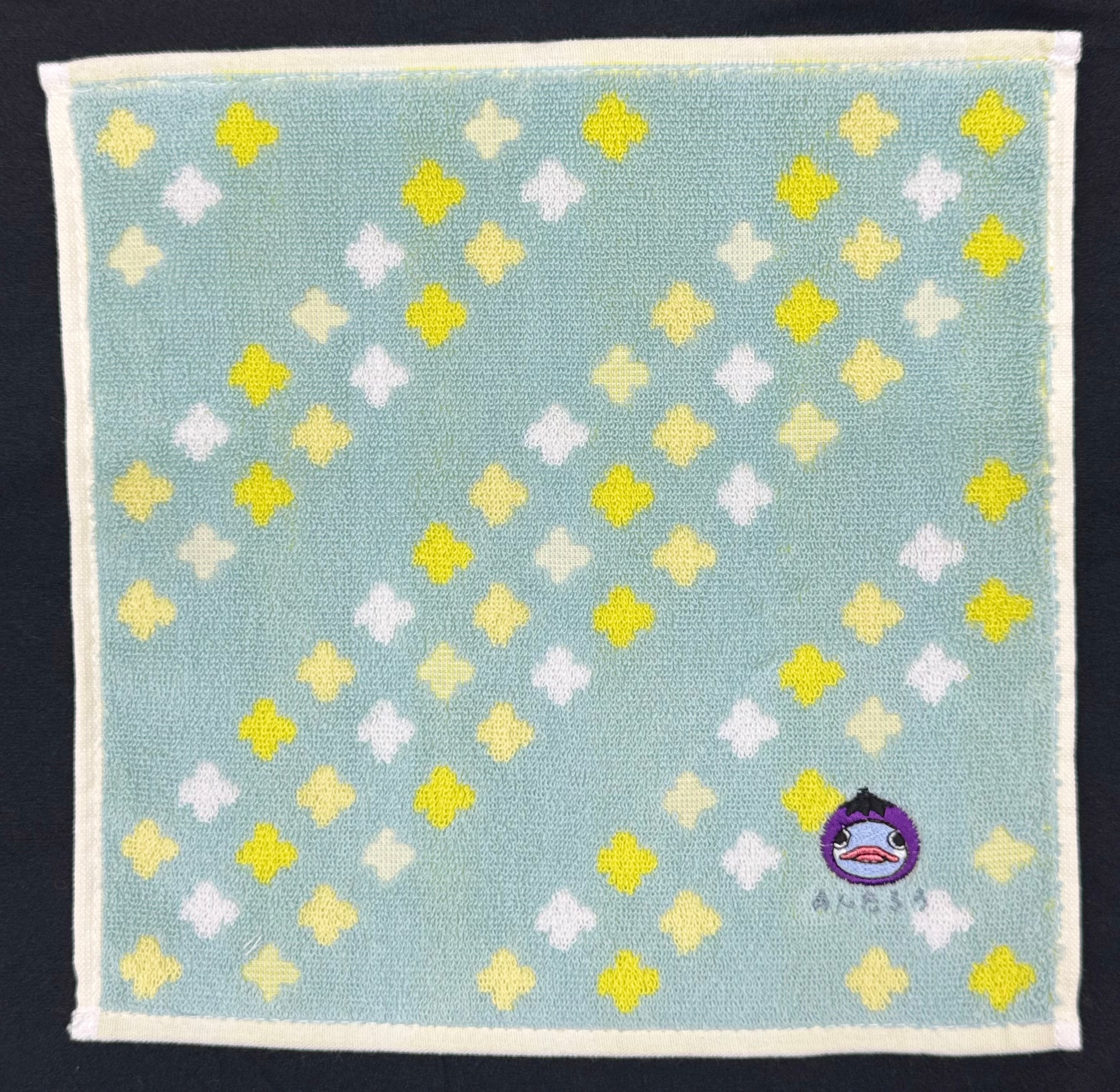 安田朗くんのナスかぶり(またはナスのヘタ)刺繍が施されているデザインハンカチ