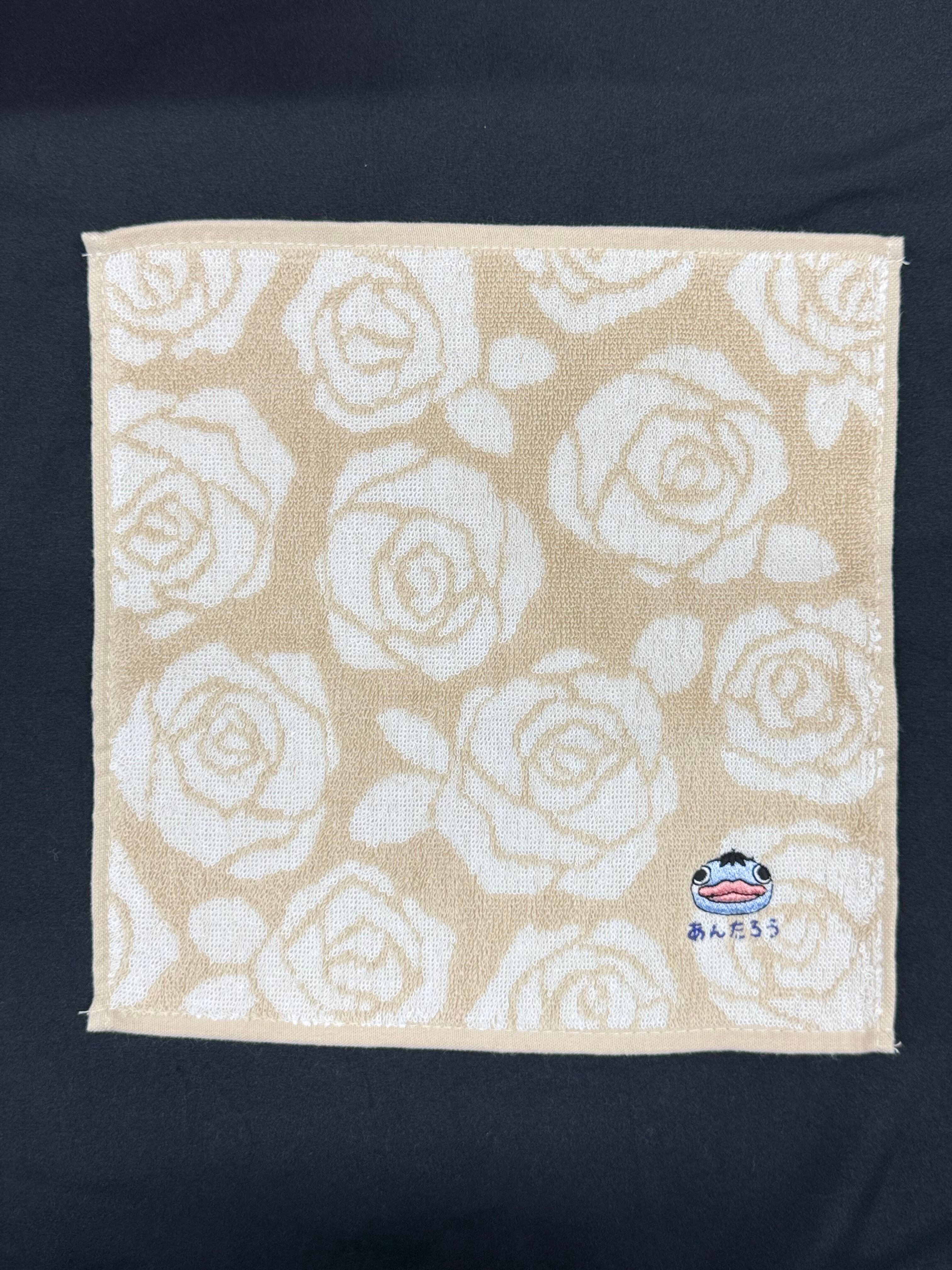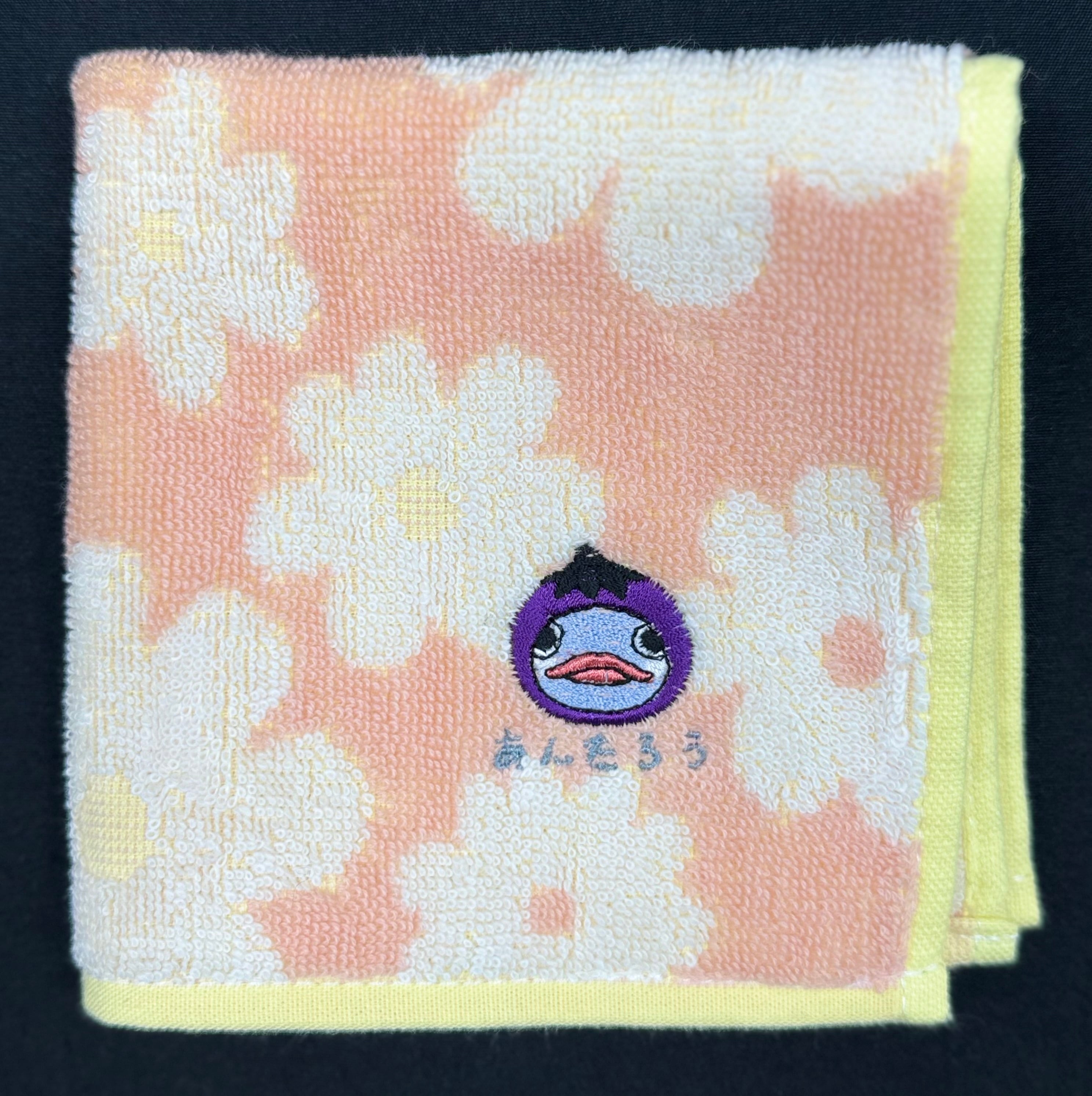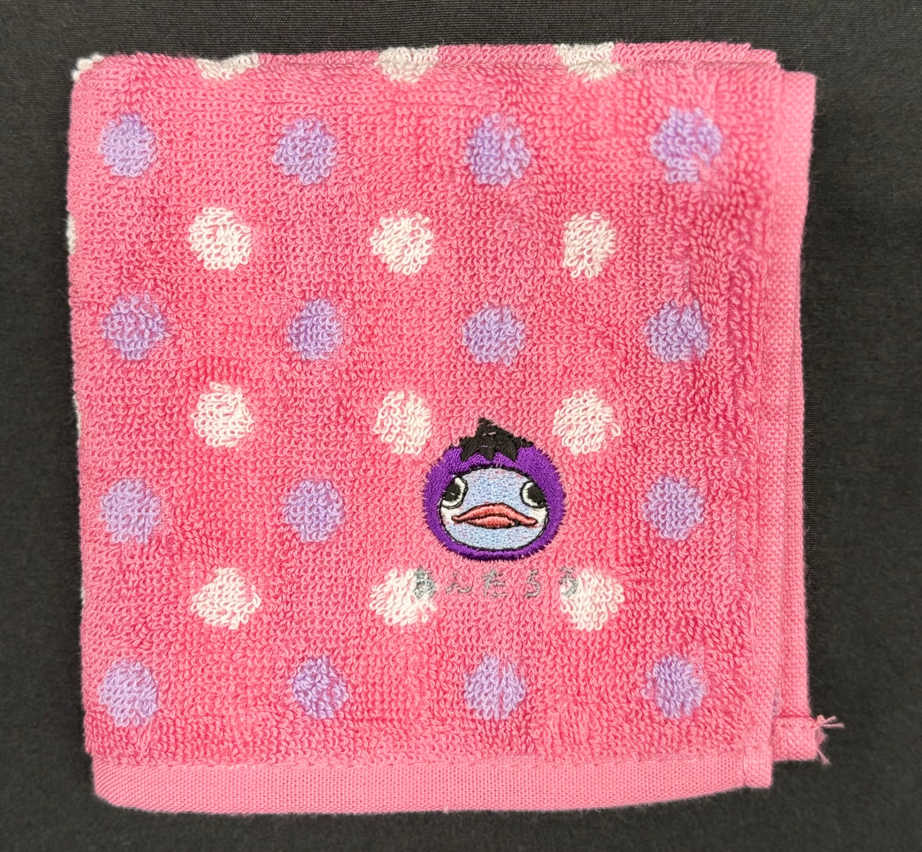 安田朗くんのナスかぶり(またはナスのヘタ)刺繍が施されているデザインハンカチ