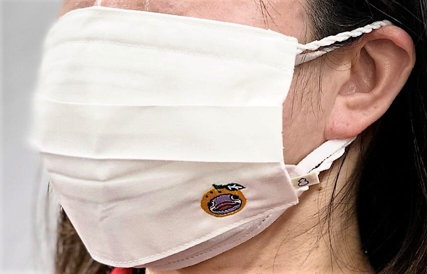 柚子をかぶった安田朗くんの刺しゅう入りコットンマスク